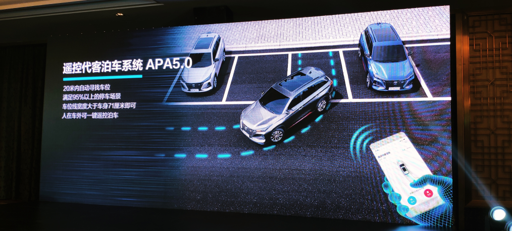 CS75PLUS上搭载了行业首发的,遥控代客泊车系统APA5.0,这项功能实现了20米内自动寻找车位,人在车外进行遥控泊车的突破。APA5.0能够满足95%以上的停车场景,只需车位的宽度大于车身71厘米即可,也就是说当你发现车一旦停进去,但开不了门人出不来的情况,或者车辆停好后被后续车辆挤占上车空间时,都可以通过手机操控让车辆停入或者驶出狭窄的车位。