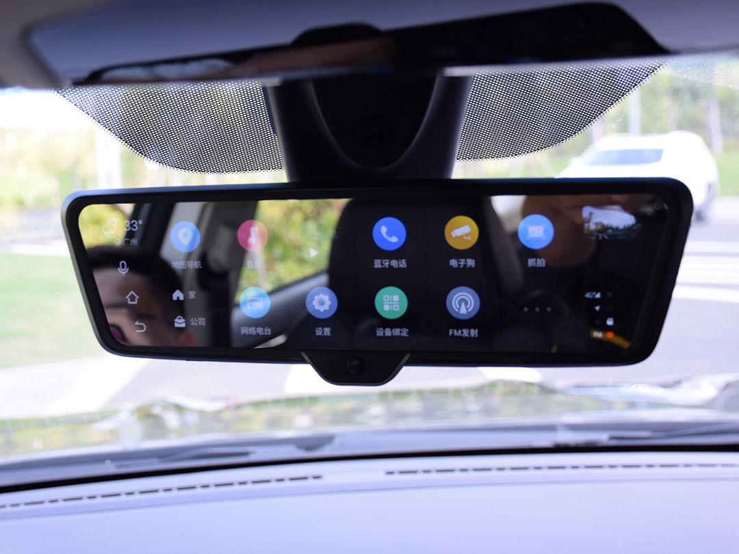 内后视镜集成了行车记录仪,导航、电台、蓝牙电话等功能,并且支持触控操作,虽然里面的一些功能在实际用车中很少用到,但花哨的配置却能给内饰增添几分科技感。