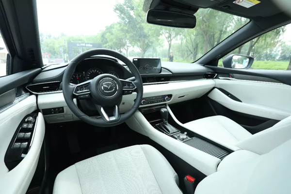 内部空间线条简洁流畅,环抱式中控台设计,两侧门板饰件则是为了座舱视觉延伸。增加一定的宽阔感,同时展现让人感到轻松且愉悦的空间美学,展现了马自达设计师的灵通。
