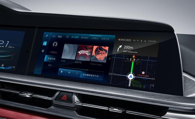 中控最引人瞩目的当属双12.3英寸全高清视网膜大屏以及左侧触控屏设计,三联屏以驾驶员为核心的8.1°弧度设计,整体操作更为出色,此外,液晶仪表还提供3种不同的界面主题,虚拟式仪表变换极为科幻。此外,左侧触控屏可直接控制陡坡缓降、ESP开闭、大灯高度调节等功能,日常操作非常方便。