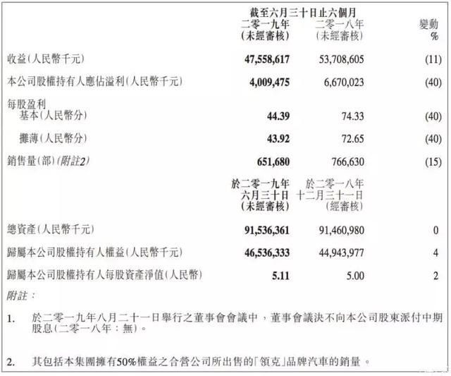 8月21日,吉利汽车发布公告显示,公司上半年营收475.6亿元,相比去年同期下降11%;净利润40.1亿元,相比去年同期下降40%。其中,总营收略高于此前市场预估的459.2亿元,净利润略低于市场预估的40.4亿元。