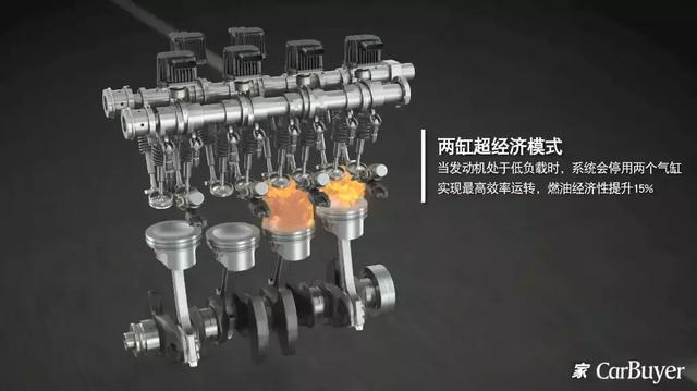 比如急加速或者爬坡等动力负荷较大的行驶工况下,它会主动进入“四缸高性能模式”,全力做功输出动力。低速缓行或者下坡这种负荷更小的工况下,则只开启2个气缸进行工作。“四缸经济模式”用来应付平稳直路的巡航工况。