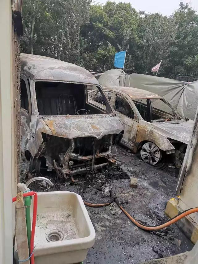 参谋长说车平台收到线索后,第一时间赶到。现场有2辆完全烧毁的车和1辆轻微受损的车,链接车辆的充电桩也被烧毁。然而,工作人员不接受任何采访,拒绝拍照,并驱赶现场的人(这么神秘...)