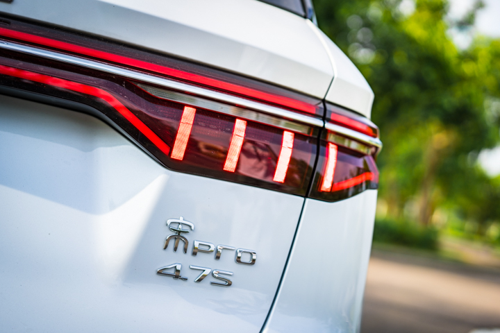 全新宋Pro的尾部设计规整且有着很强的层次感,贯穿式的尾灯通过中间的镀铬饰条丰富整体设计,内部同样有三个竖条灯带的“龙爪”设计与前大灯相呼应,并且尾灯具备逐级点亮以及流水式转向灯的效果,能在一台A+级SUV上看到媲美豪华品牌的装备水平,确实很能吸引消费者。