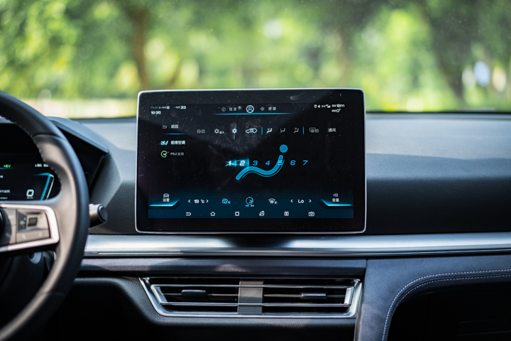 12.8英寸的可旋转中控大屏依然是熟悉的操作界面,集成了空调、车辆控制以及丰富多媒体娱乐功能,在切换至百度地图APP屏幕能够自适应旋转,向偏向主驾驶位7度的设计使用起来更加便捷。8英寸的液晶仪表盘虽然尺寸不算大但功能实用性足够,并且能够切换多种模式体验感不错。