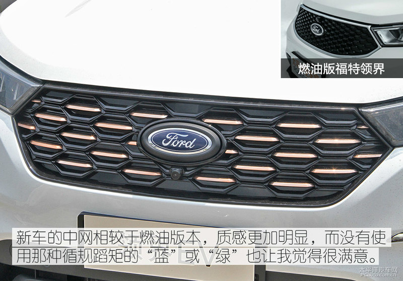 仔细观察目前市面上的新能源汽车,惯用的元素无非是绿色和蓝色两种色调,来进行新车的点缀和设计。在福特领界EV上则没有那么“随大流”,如果不是在尾部有个EV的铭牌,在我这个汽车编辑看来,这辆车甚至是领界燃油版本的豪华套装或是其他。