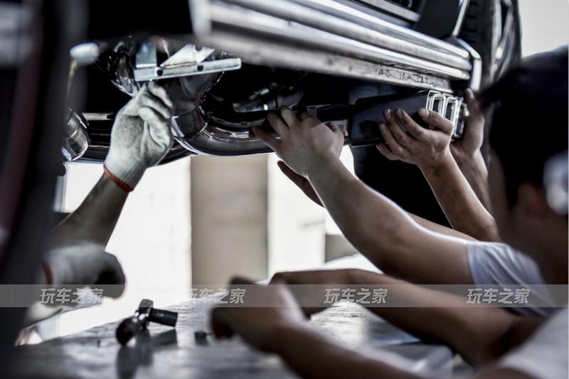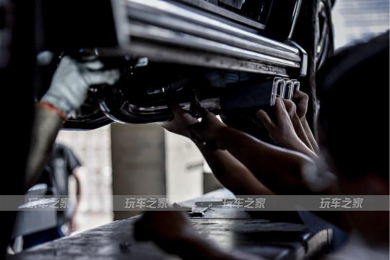 原来单边排气,经过加装,改成了双边六出,而且是两边均出气,先不谈声浪,就只看这个外观效果就很霸气