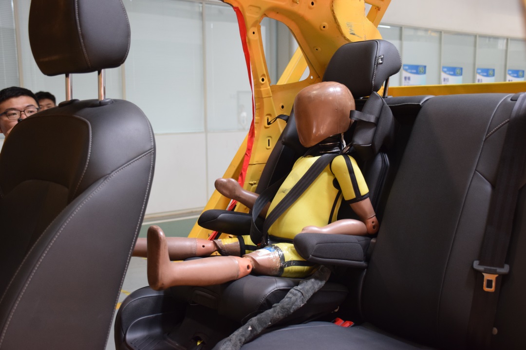而在此次试验中,后排的儿童假人被牢牢束缚在安全座椅上,防止儿童假人发生二次碰撞的伤害。