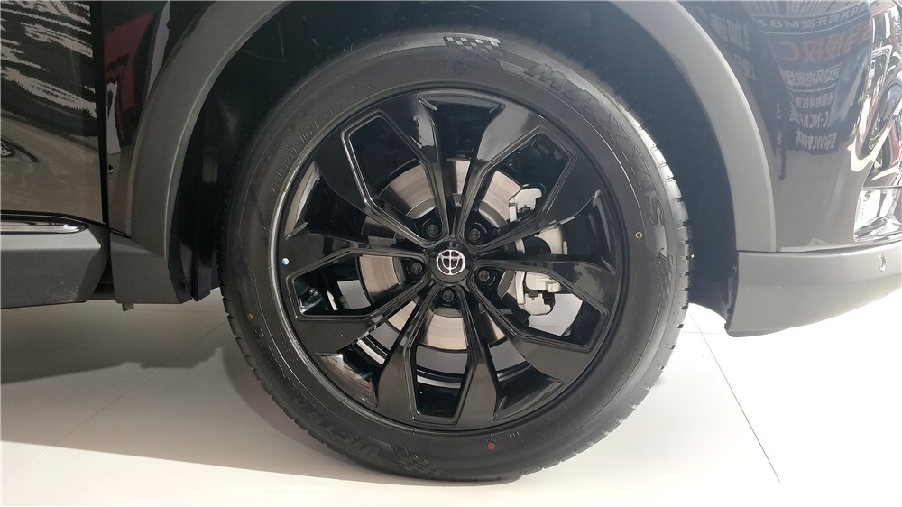 而这次静态体验的车型则使用的是玛吉斯的一款轮胎,规格同样为235/55 R19,与轮胎匹配的是19英寸的纯黑色铝合金轮圈。具体实际是什么轮胎型号,我们也希望能拿到量产版的试驾车进行体验。