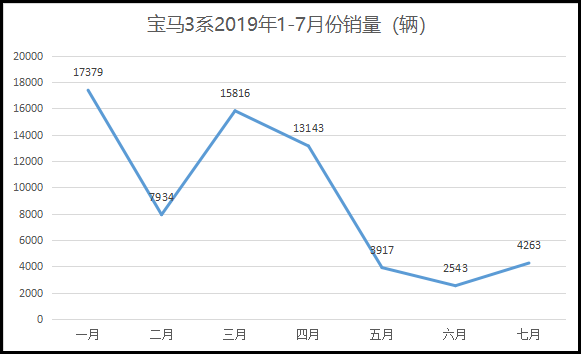 然而,在有着如此多改善的全新一代宝马3系,上市后并没有和我们想象中的一样成为爆款车型,更不提超越同级其他两位对手了。以今年1-7月份的销量数据上看,在全新一代宝马3系六月份上市之前,销量从四月份的10000+直接滑铁卢跌到五月份的不及4000台,六月份甚至跌到2543台,到七月份才缓缓回到4000+的销量。