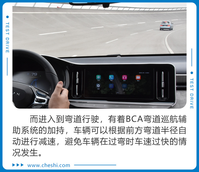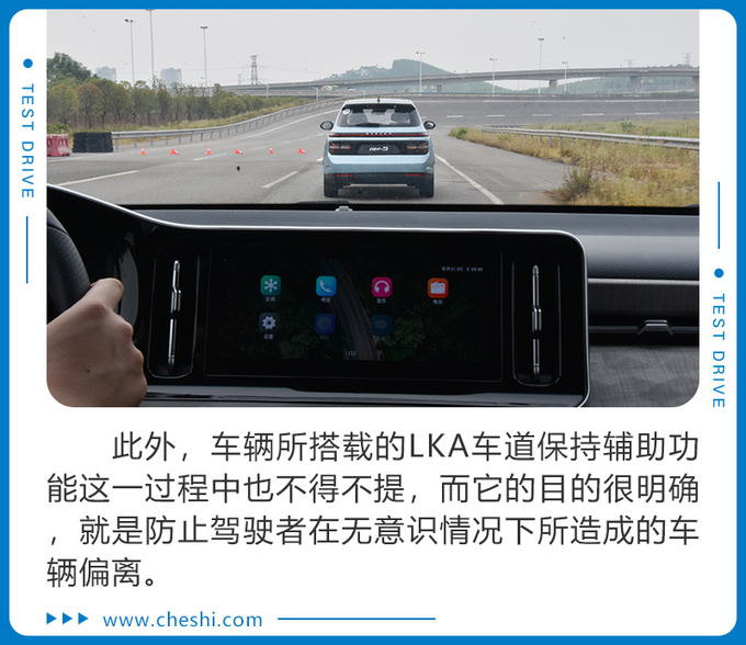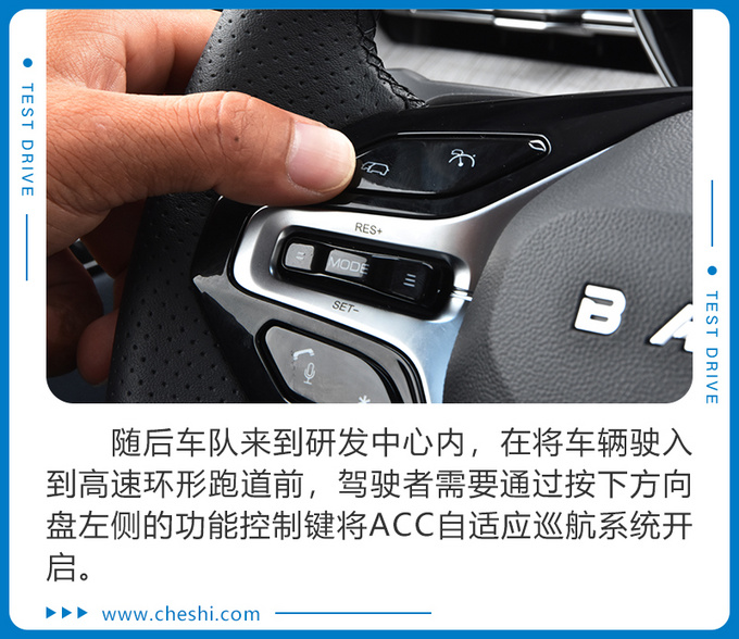 本次试驾活动上,总共分为智控驾驶、场地试驾和智能网联系统操作体验三大环节。对于这个智控驾驶环节这项,其实光是听名字也大致能猜得到,是将体验车辆所具备Level2级智能驾驶辅助系统中的ACC(自适应巡航)、ICA(高速智能领航)、BCA(弯道巡航辅助)、LKA(车道保持辅助)以及LDW(车道偏离预警)等众多科技配置。