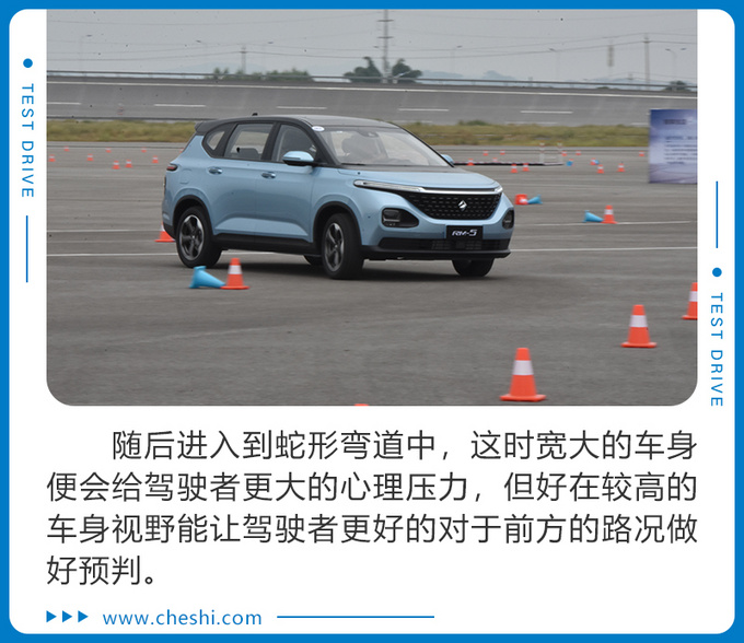 随后,我们来到了场地试驾环节,在这个场地中有着蛇形绕桩、直角弯等等多种路况,对于新宝骏RM-5的操控性是一种考验。