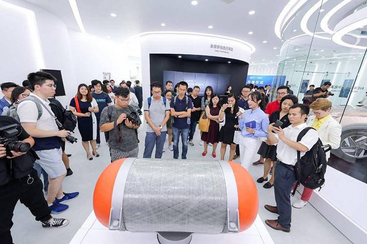 在NEXO空气净化演示展区和氢燃料电池车驱动原理展区内,观众不仅可以静态体验到现代NEXO的实车,还可以近距离接触由碳纤维制造的NEXO储氢罐,其强度较钢铁材质高10倍,不仅可承受高压,还覆有可长时间承受火焰的特殊涂覆技术。