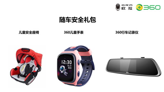此外,欧拉将与360联手成立儿童守护者联盟,共同宣传儿童出行安全,传播儿童安全守护知识,一起为儿童安全努力,为儿童健康成长发声。在2019年8月27日至2019年9月17日,购买欧拉R1亲子版即有机会获得随车安全礼包,礼包有儿童安全座椅、儿童智能手表、行车记录仪等。