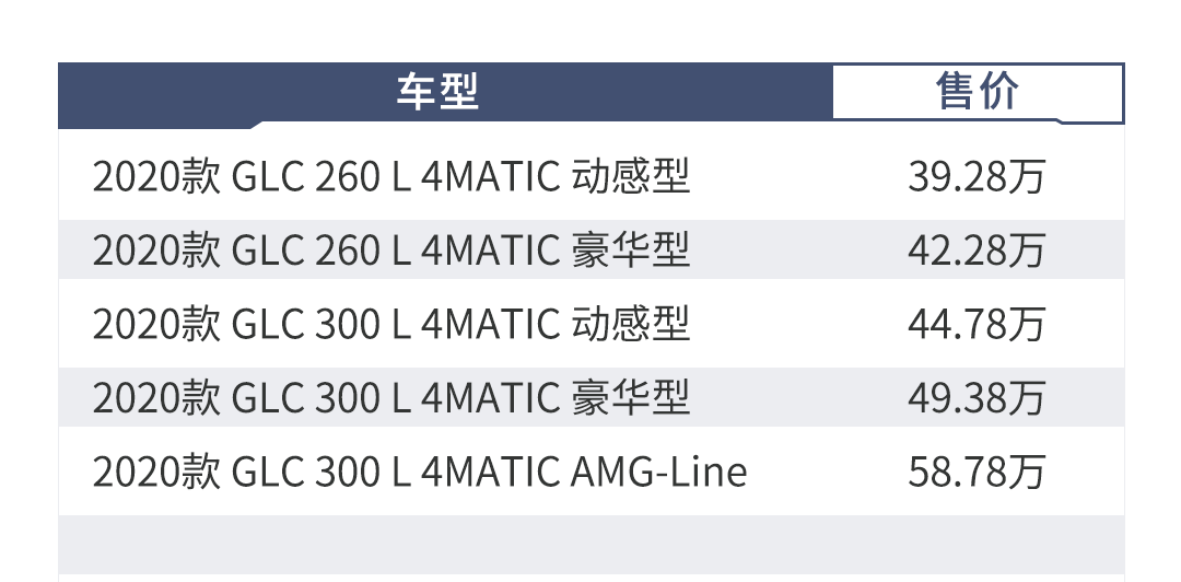 因此最值得购买的无疑是售价44.78万的中配GLC 300 L动感型,除了能够得到GLC车系和本次改款的所有精华配置以外,高功率版2.0T引擎也是购买它的一大理由。因为SUV免不了载着一家人或者亲朋好友,再拉上行李出行,轴距这么长后排那么大的车天天一个人开,空驶实在显得浪费,还不如买轿车,而258马力的高功率引擎在满载时高速行驶、爬坡、超车都更加从容。