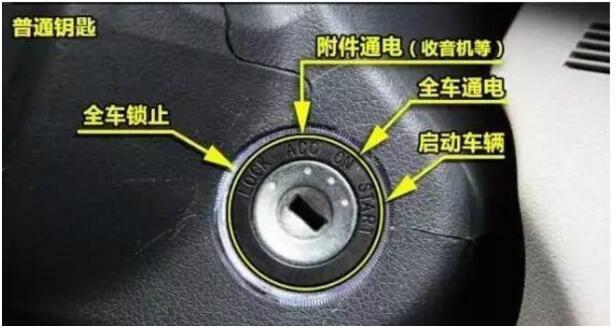 首先,处于LOCK挡的时候,车辆切断所有电源,属于全封闭状态。当扭动钥匙,进入ACC状态的时候,便接通了部分电源,例如CD、空调等。当进入START的时候,车子全部电源启动,之后,回复到ON的状态。这就是点火的全部步骤。