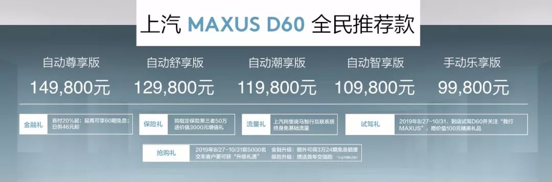 MAXUS基于大数据,通过对150万用户样本的数据分析,针对不同人群的需求,把用户选择最集中的配置集成为D60全民推荐款。