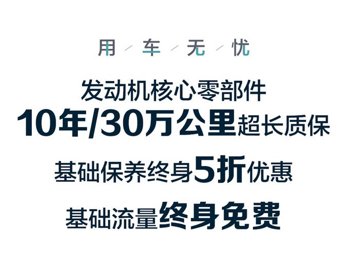 CS75PLUS预售价格为12.79-15.79万元,并提供1.5T+爱信6AT和2.0T+爱信8AT两种动力组合,说实话12.79万的预售起步价很厚道,本应成为我们最为关注的信息点,却被堪称史诗级的预售政策抢了风头。在看到“发动机10年或30万公里超长质保、基础保养终身5折优惠、基础流量终身免费”这些字眼后,不免让人心生感叹:这力度实在是太猛了!