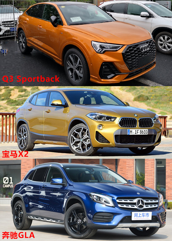 尺寸方面,和奔驰、宝马紧凑型轿跑SUV尺寸远小于同级别常规紧凑型SUV的的产品策略不同(GLA小于GLB,X2小于X1),奥迪Q3 Sportback的车身尺寸与普通版Q3基本相当,车长略超Q3达到4.5m,轴距则同为2680mm。相较GLA、X2两个竞品,Q3 Sportback在尺寸上明显占优。动力方面新车与Q3保持一致,采用1.4T+7DSG、2.0T+7DSG的动力总成,高配车型提供四驱系统。