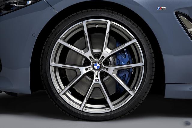新车的轮毂采用20寸“Y”字形五辐轮毂设计,材质为重量较轻的合金。前后轮胎尺寸不一,前轮胎为235/35R20,后轮胎则为275/40R20。同时,还带有标志性的蓝色M运动卡钳。