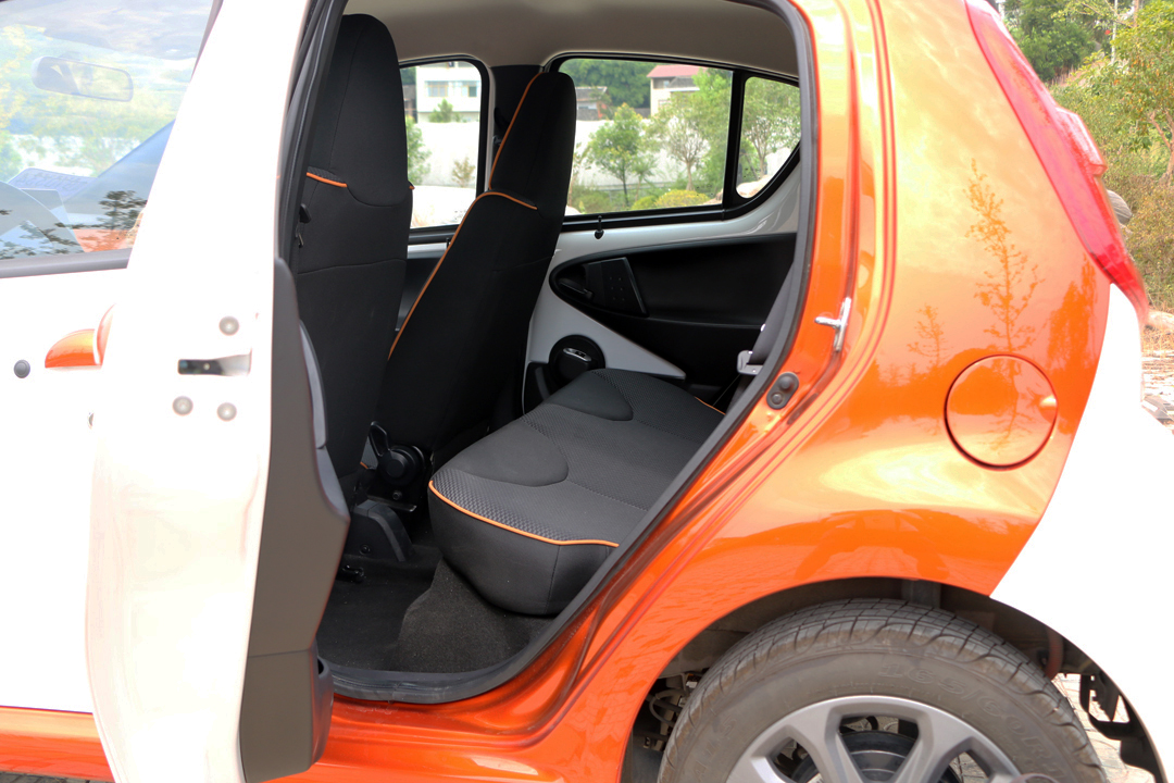一屁股下去,后排座椅乘坐舒适感明显不如前排座椅,不仅靠背角度过直,坐垫长度也稍有欠缺,整体空间相对局促,不太适宜成年男子长时间乘坐,但考虑到其微型车定位,也就释然了。