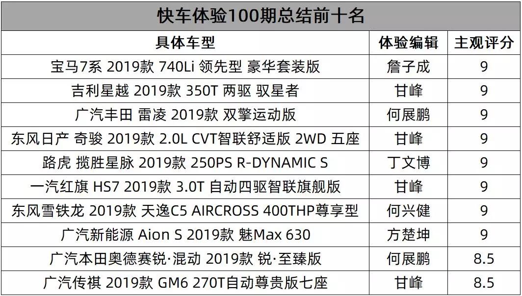 至于为什么有一些市面上很热门,很受追捧的车没有上榜?除了我们认为不值得之外,就是我们快车报业务实在太多了,轮不上过去体验。但也没关系,也许在下一个100期的时候就能见到它们了。