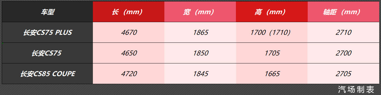 与长安CS85 COUPE相比,长安CS75 PLUS长度短了20mm,轴距增加了5mm。