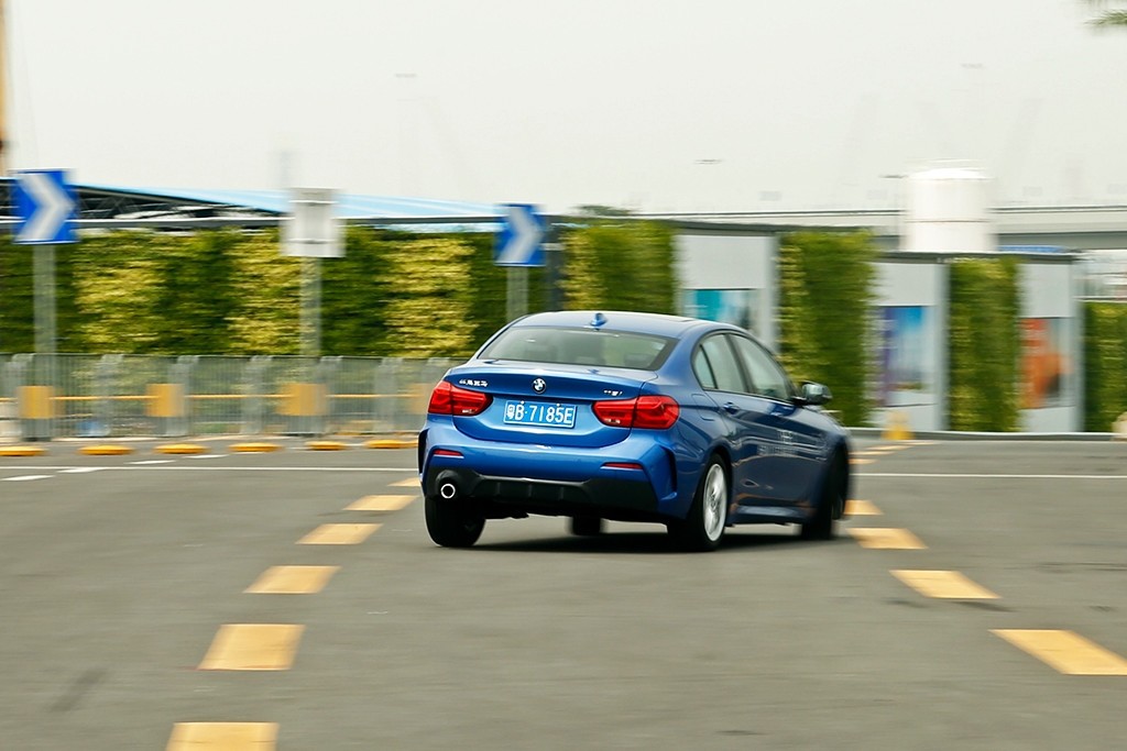 关于操控问题,我们先是做了麋鹿测试,宝马1系的整个车身侧倾其实不算大,车身姿态大幅度转弯,车内的摇晃感受不强,左右悬架的支撑可以在行程内快速强力支撑,转弯信心较足,让你感受到一丝宝马的基因特点。