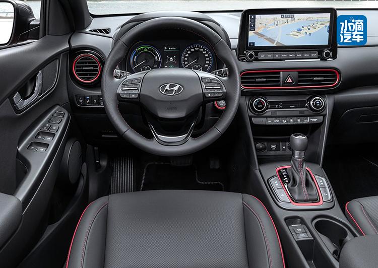 将视线转移至车内,KONA Hybrid采用了专属的内饰配色,包括空调出风口和挡把周围的红色饰条、灰色顶棚布,以及门内把手和方向盘等处的亮光黑饰板等。座椅部分,新车标配了黑色织物座椅,消费者也可以选择带有白色缝线的黑色皮布拼接座椅或黑色全皮座椅。不仅如此,KONA Hybrid还提供以橙色、青柠色和红色为主题的内饰配色,进一步丰富消费者的选择空间。