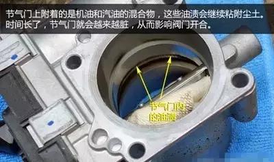 节气门是圆形管道里的一个金属片,积碳附着在这个金属片上,使得金属片变厚,空气进出不流畅,严重的甚至导致节气门不能闭合。这就造成了加速无力、发动机抖动等问题。