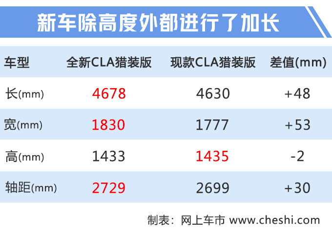 全新CLA猎装版基于MFA 2平台打造,长宽高分别为4678×1830×1433mm,轴距加长至2729mm。动力方面,预计引入国内的全新CLA猎装版将搭载2.0T发动机,最大功率165kW,峰值扭矩350N·m,传动系统匹配7速双离合变速箱。