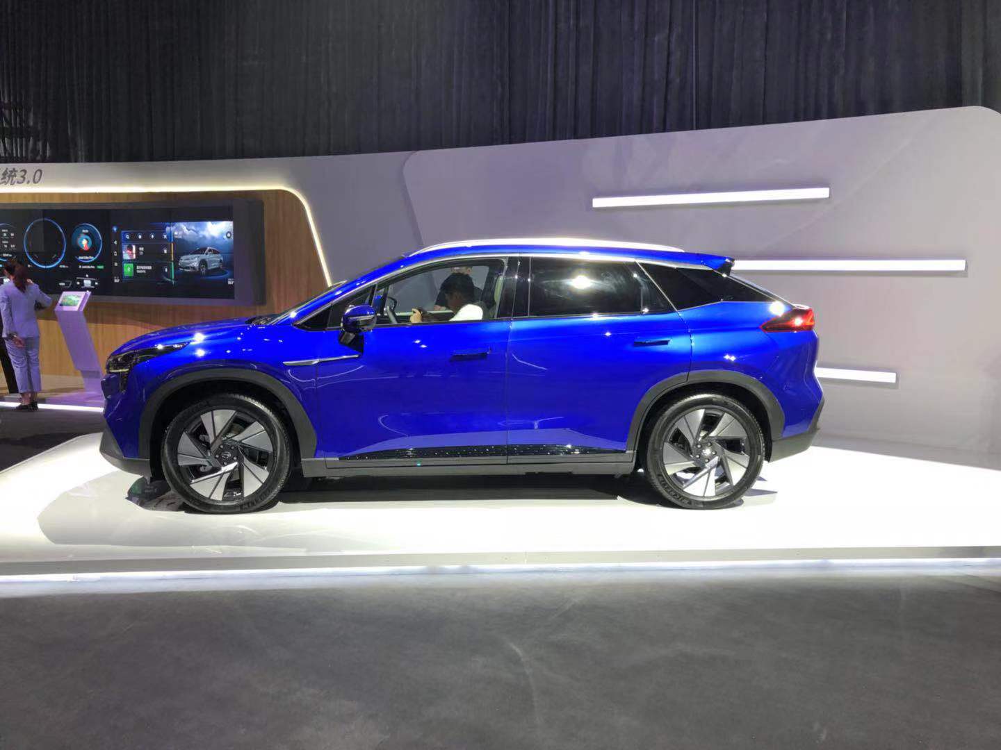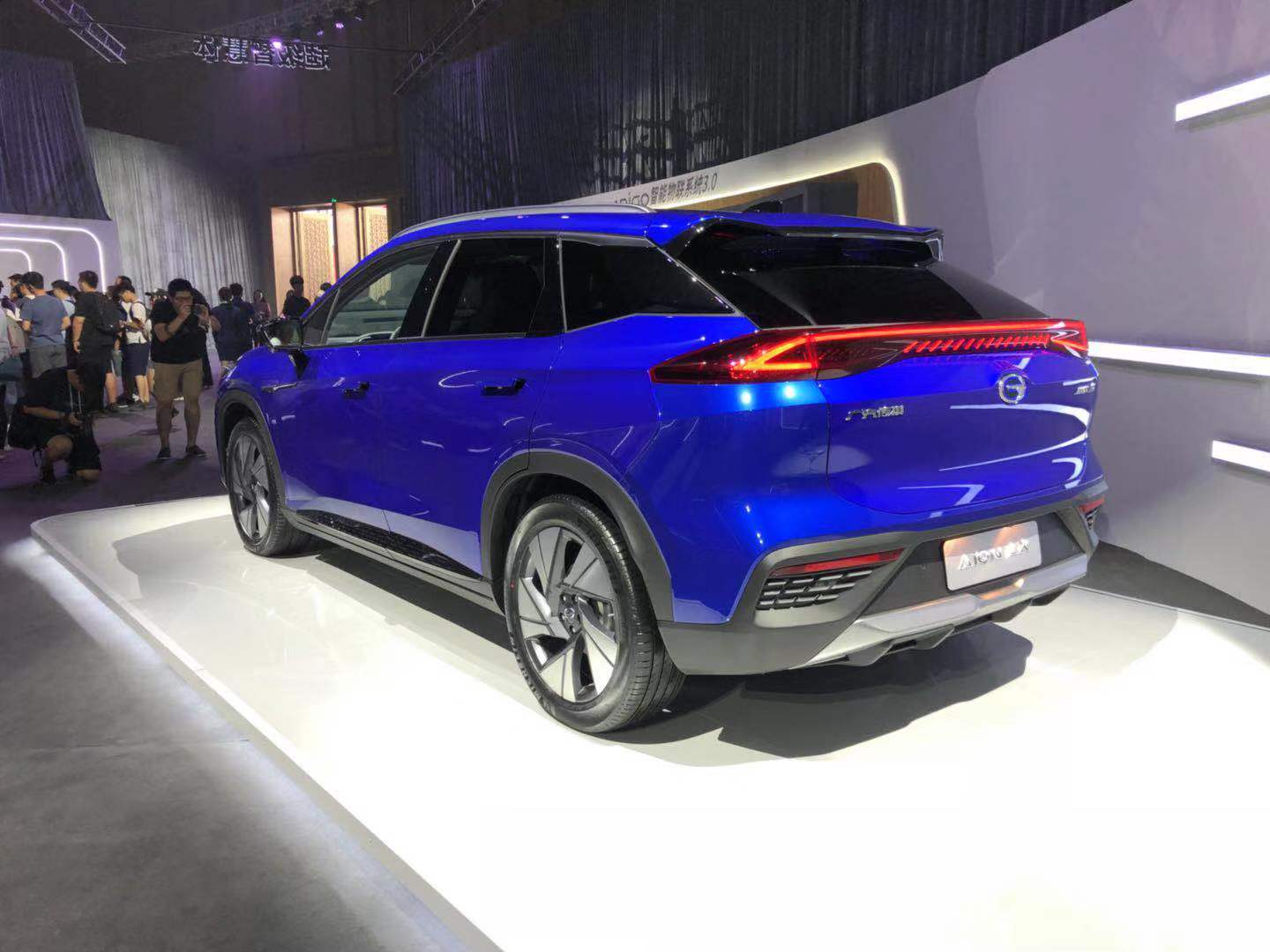 车身侧面,广汽新能源Aion LX采用了悬浮式车顶的设计,搭配延伸至车尾的腰线,车身姿态十分运动。
