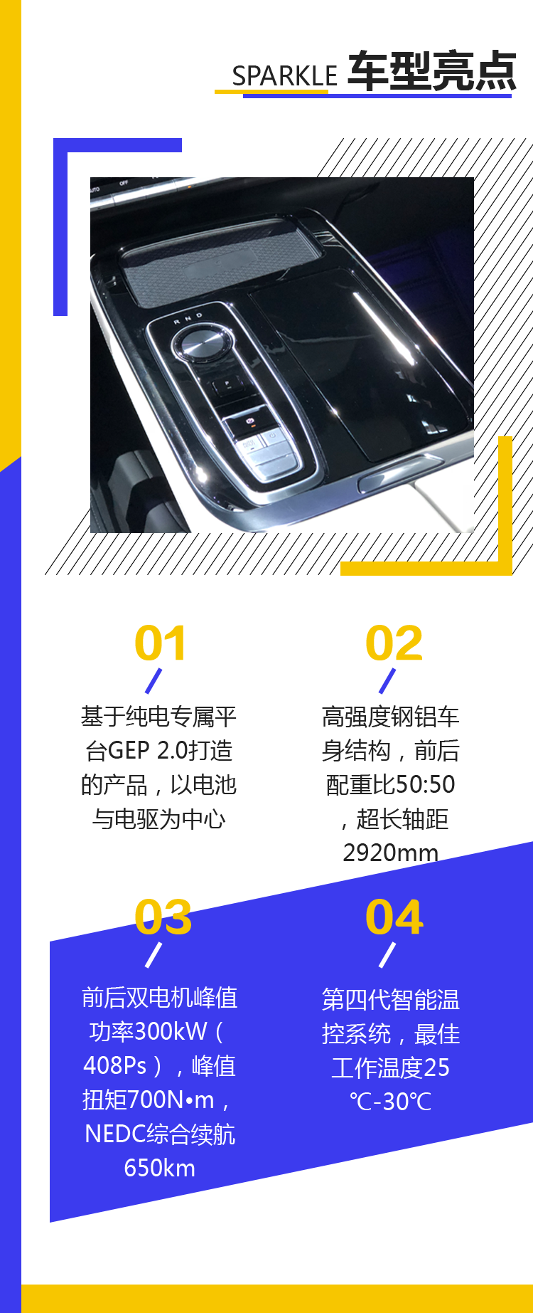 动力方面,广汽新能源Aion LX搭载最新一代CATL 811三元锂电池技术,前后双电机峰值功率300kW(408Ps),峰值扭矩700N·m,电池系统能量密度更高。在续航里程方面,Aion LX的NEDC续航里程650km,0-100km/h加速时间仅为3.9s。