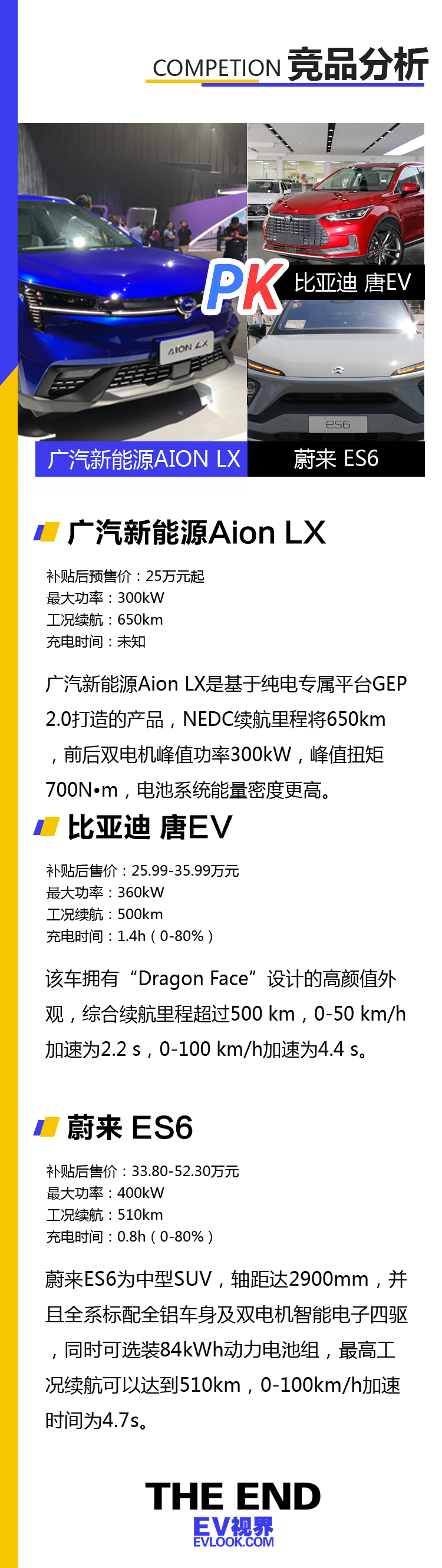总结:广汽新能源Aion LX定位于中型纯电动SUV,是广汽新能源Aion体系下首款SUV战略车型。在GE3停产以后,广汽新能源目前在售的纯电动产品仅有Aion S一款车了。不过,凭借着在技术上的优势,Aion S还是取得了不错的销售成绩。如今对于消费者来说,市面上多了一款在性价比、续航里程以及外观设计上都会颇具竞争力的SUV车型,无疑也是个很好的选择。