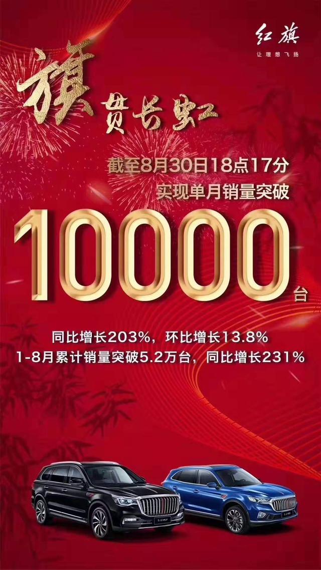 中国第一汽车集团有限公司董事长、党委书记徐留平于2019泰达论坛发表主题演讲前夜,也就是8月30日,从长春刚刚传来一个好消息,中国一汽红旗品牌单月销量首次突破1万辆,同比增长203%,环比增长13.8%,创造了新的历史记录。
