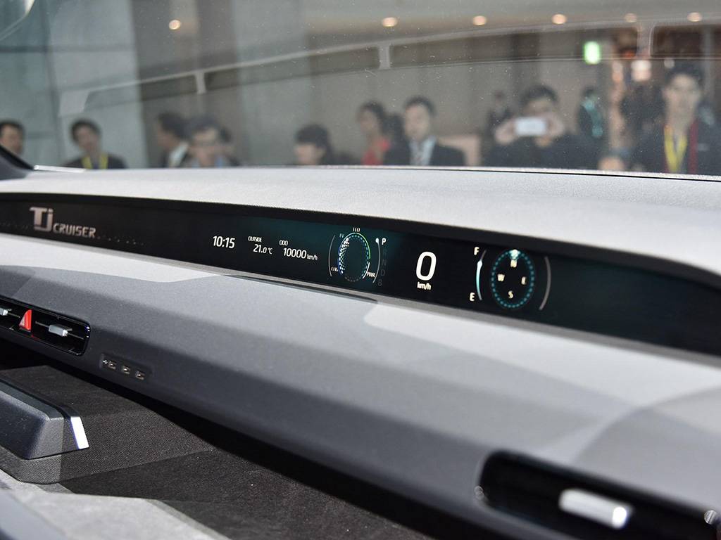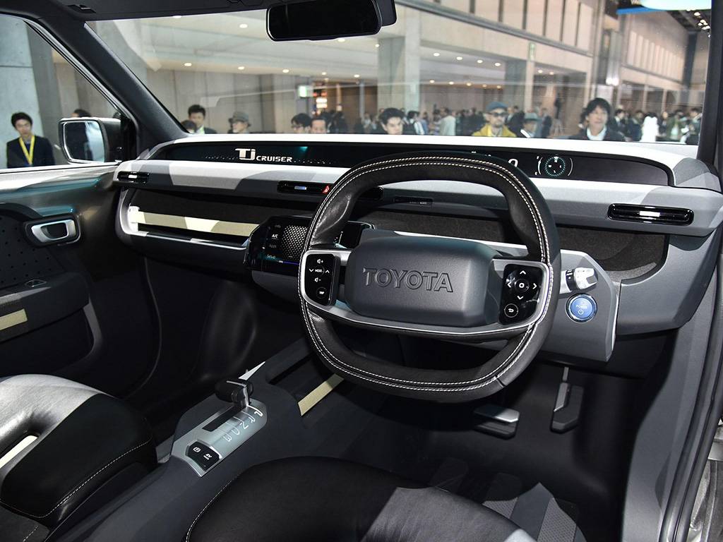 内饰部分亮点不少,中控台采用了对称式设计,整个中控基本看不到物理按键的存在,显得十分简洁,传统的仪表盘被贯穿整个中控台的全液晶仪表盘所代替,在科技感的体验上有了大幅度的提升。同时新车的方向盘采用了双幅式设计,并用皮质材料包裹,握感应该不错,方向盘中央的丰田品牌英文字母代替了以往的“牛头标”设计样式,预计是在向FJ 酷路泽以及早年间的兰德酷路泽系列车型致敬。配置方面,新车搭载有可控制空调及各种娱乐功能的中控屏、EV纯电动驾驶模式按钮以及电子手刹等装备,让用户可以更舒心的进行驾驶。