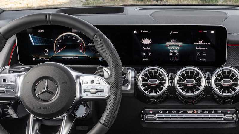 作为AMG车型,最明显的变化还是在材质方面的升级,中控台采用了大量的碳钎维饰板,并且采用了红色的设计元素搭配,提升了内饰的运动氛围。另外,方向盘也采用了AMG样式的平底运动方向盘,不过AMG GLB 35在座位上与普通款车型相同,提供2+3+2的七座布局,并且提供40:60比例放倒。