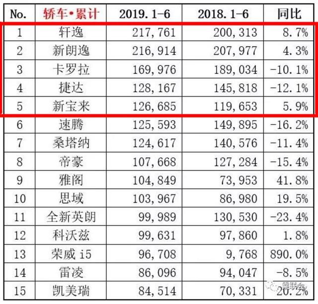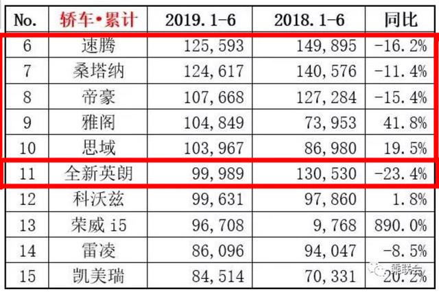 好了,以上就是2019上半年销量最好的5款合资轿车,受限于文章篇幅,排名后面的速腾、桑塔纳、帝豪、雅阁、思域等车型师哥就不来做一一介绍了,大家知道他们排名靠后就好。值得一提的是全新英朗在上半年销量榜单中出现了"滑铁卢",整体销量只有99989辆,不到10万辆,排名则仅仅是在第11位,这也与以往英朗经常能在前五的名词有着很大的反差,让人不禁觉得有些惋惜。最后,对于当下老百姓所喜欢购买这些汽车车型,你们有什么意见和看法吗?欢迎下方留言,咱们一起来交流探讨下。