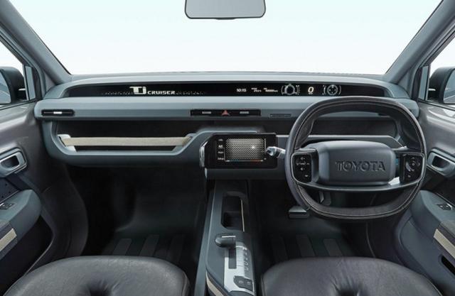 接着来看内饰方面,丰田Tj Cruiser Concept采用了对称式中控台设计,整个中控很是平直,多功能方向盘搭载上TOYOTA字样,讲真的,真的很有年代感,不过这里我就不评价好看与否,大家还是仁者见仁吧。此外,其还配备了电子手刹、EV纯电动驾驶模式按钮等。