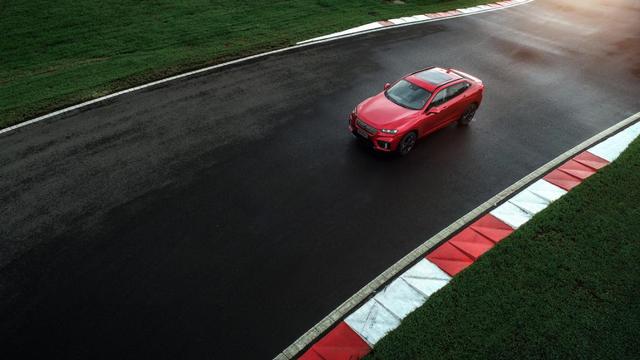 首先体验的重点就是VV7 GT所搭载的Launch Control弹射起步系统。在之前我们一般认为一辆SUV又不是什么高性能赛车,搞弹射起步似乎有点多余,但有总比没有好,实际体验一番后纷纷表示"真香"。进入弹射模式并不复杂,在教练指导下,挂"D"挡切换至运动模式,油门和刹车都踩到底,然后按住方向盘换挡拨片"-"键两秒,松开刹车即可,车辆随即被"弹射"出去,一瞬间的心跳加速另人心潮澎湃,再加上车内模拟声浪系统的催化剂作用,整个过程不愧为"GT"所代表的运动特质。也得益于此,VV7 GT的百公里加速成绩仅为7.3秒,相当优秀。