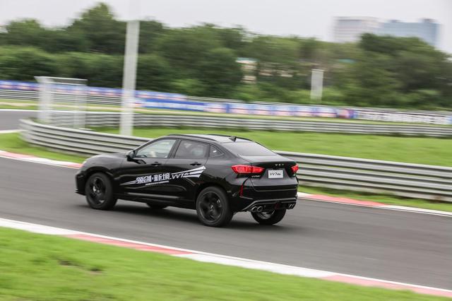 在运动模式下,VV7 GT的变速箱在加速阶段换挡非常积极,顿挫感并不明显,在最开始就能以最大扭矩输出动力,过弯前后的减速和加速整个保持的都很顺畅。VV7 GT对底盘的调教也很用心,采用了全铝合金下摆臂悬架,大幅降低簧下质量,提升了舒适度和操控性;同时,通过调整前后螺旋簧刚度、前后稳定杆尺寸、悬架衬套性能,使得整车更加稳定、舒适。在赛道上得到的反馈就是对震动的过滤比较优秀,直线行驶非常平稳,过弯时候也不会出现明显侧倾,动作流畅自如。
