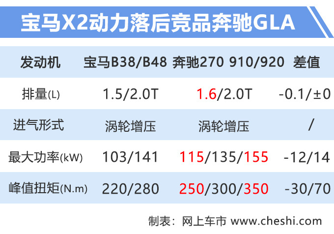 国产X2相比进口车型在外观造型上进行了微调,前脸取消前雾灯组,M运动套装线条凌厉看上去更加运动化,同时车身高度也进行了小幅调整。动力方面,新车依然搭载1.5T、2.0T发动机,全系满足国六排放标准,最大功率分别为103kW、141kW,峰值扭矩分别为220N.m、290N.m,传动系统匹配6AT变速箱,取消了现款进口X2四驱版顶配车型。