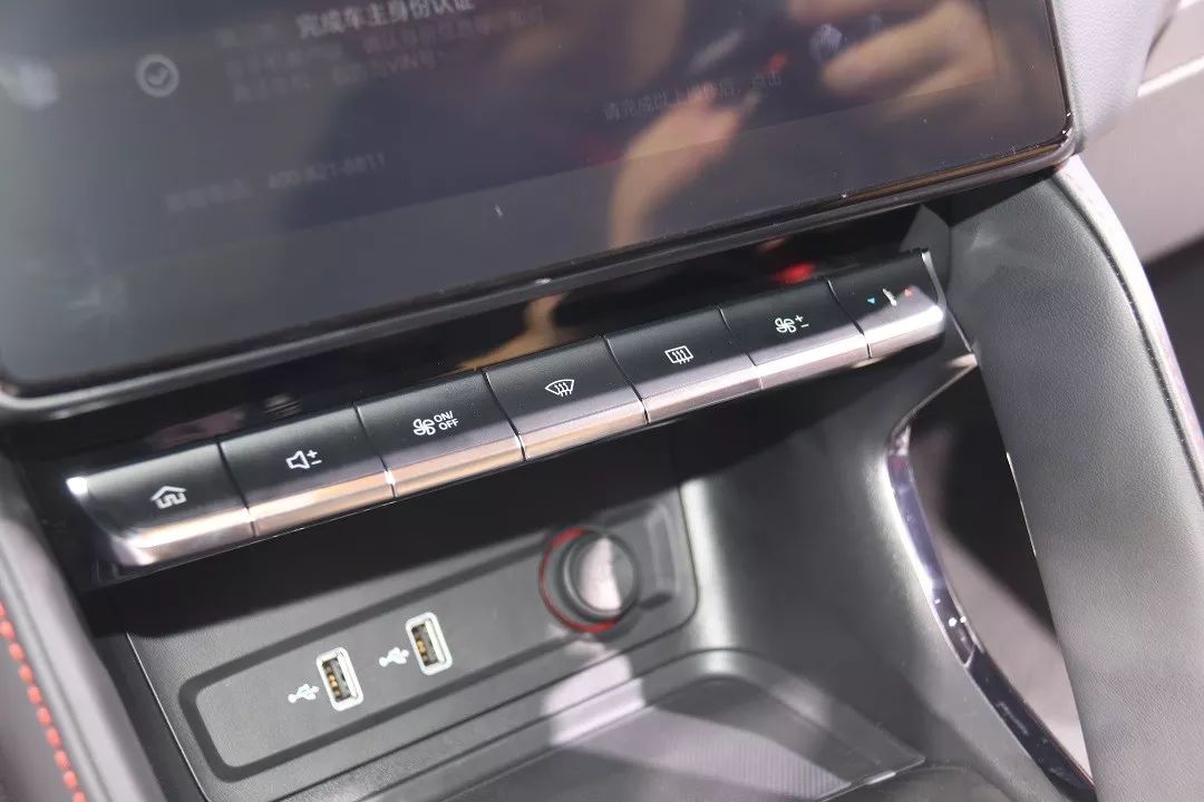 空调控制区域按键样式由现款的旋钮式更换为类似钢琴按键的造型,这也是目前很多豪华车常用的设计元素。挡杆前挡带有两个USB口、后空调出风口也带有2个空调出风口,可满足前后排所有乘客的手机充电需求,此外,内后视镜侧面也带有一个USB口,可在外接行车记录仪时省去走线,既安全又方便,必须点个赞。
