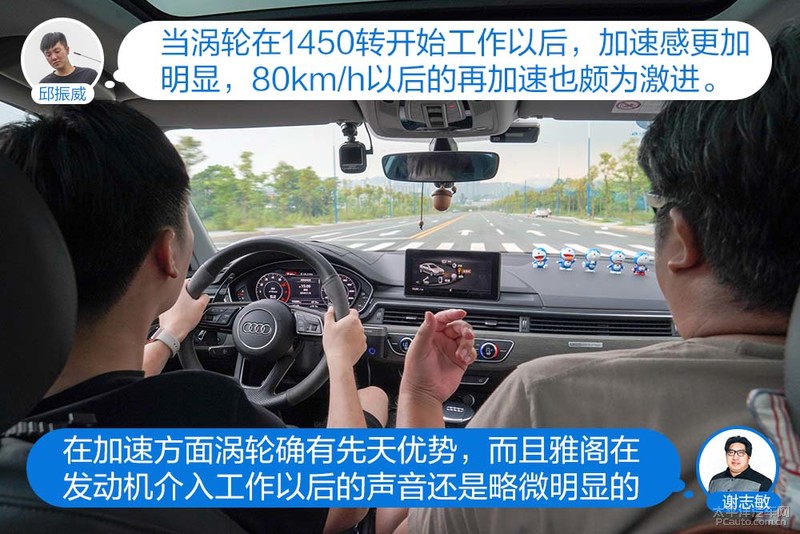 在电机直接驱动下,每一次起步都轻松自如,在城市当中行走还是颇为省心,并不需要在意跟车反应慢的问题。而A4L则需要驾驶者对油门以及刹车有更好的控制,毕竟在低速行驶中,涡轮的介入也需要对油门更加注意。
