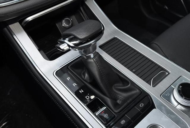 内饰方面,中控台的造型还是沿用了前款的设计,用料及质感也保持不变。不过中控屏下方的档杆控制区域,将前款的圆润造型更换为银色拉丝铝质感的直线面板。对于车内的高级感方面增加了不少。