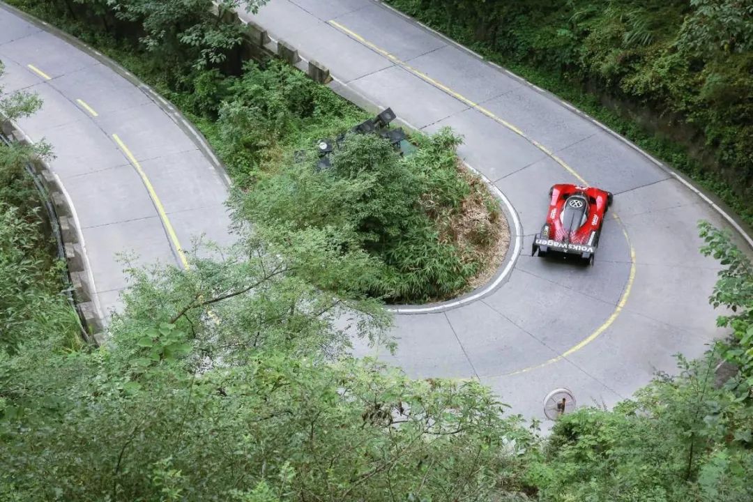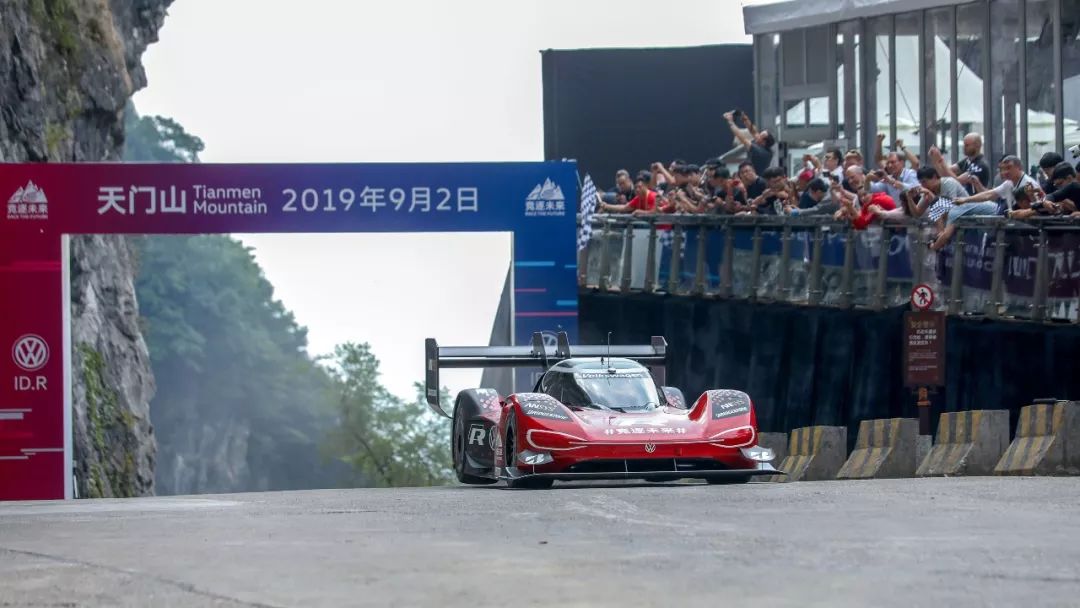 9月2日,曾四次获得勒芒24小时耐力赛冠军的法国车手Romain Dumas来到了湖南著名的天门山风景区,驾驶着带着特别的中国红涂装的大众纯电动赛车ID.R ,以7分38.585秒的时间穿过天门山险峻的“99道弯”,在这里留下了一个标杆性的成绩。这是继派克峰登山赛、古德伍德速度节以及德国纽博格林北环之后,ID.R创下的第四个记录。