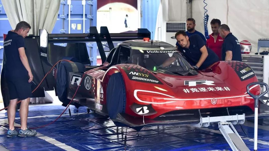 出发之前,ID.R也要像F1赛车那样用保温毯将普利司通提供的光头胎保持在状态最好的温度,也有工作人员时刻监视着天气雷达,本来两个冲刺圈(前面有一次热身)差点就因为乌云的光临而只剩一个,我们的损失可就大了!
