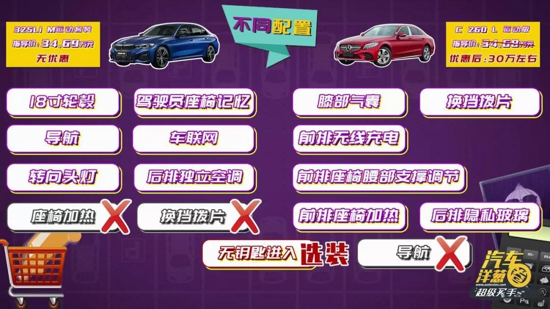 所以就两车配置来说,都还是比较丰富的,不过仍然有一丢丢小遗憾,比如说两台车的无钥匙进入都需要选装,3系没有座椅加热和换挡拨片,C级没有导航等等,小伙伴们,你们更喜欢哪台车的配置?