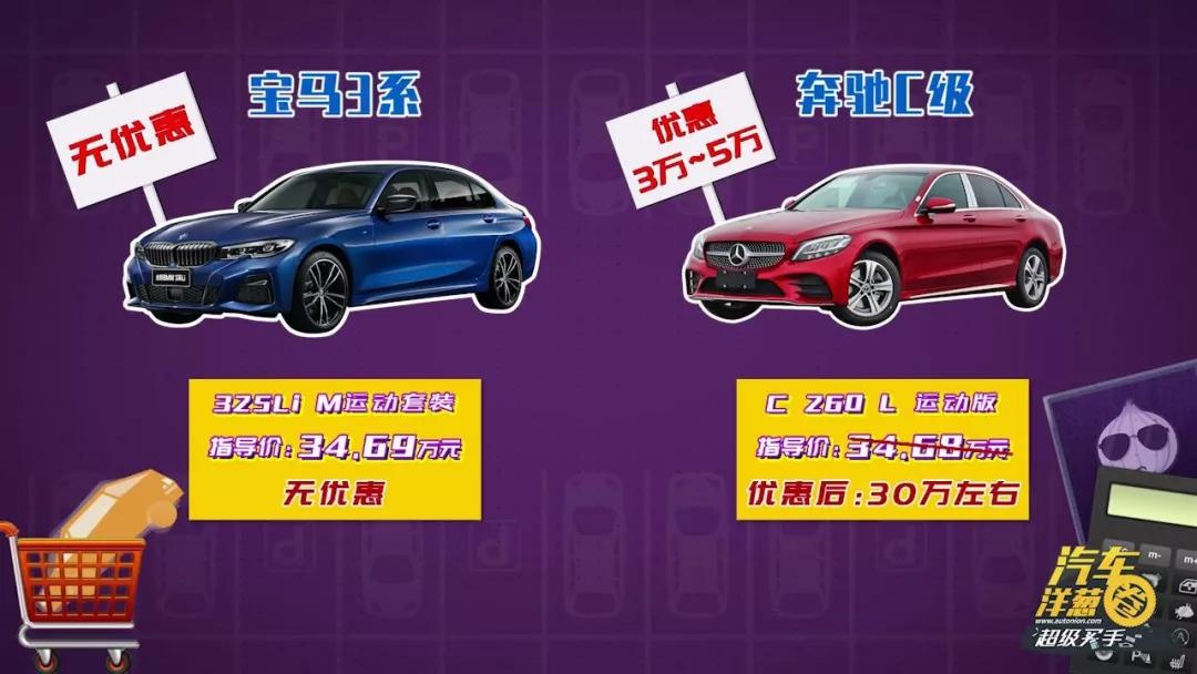 先说价格,两台车的指导价分别是34.69万和34.68万元,虽然指导价只相差100块,但是目前3系基本原价销售,C级有着3万~5万的优惠,所以落地价还是有一定差距的,3系要更贵。