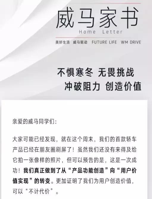 上文中提到威马创始人沈晖的内部信,除对侵权官司的间接回应外,也有他对威马在销量压力下如何突围的思考,沈晖表示将启动威马新一轮的组织架构调整。